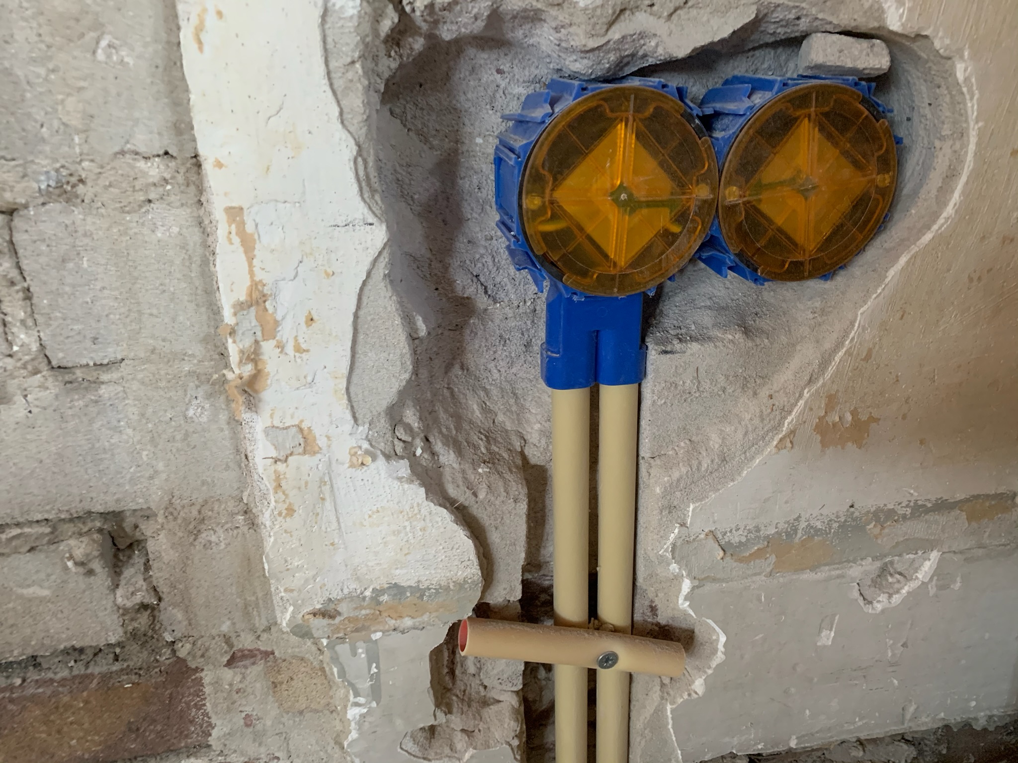 Bij de nieuw te plaatsen vloerverwarmingsverdeler.