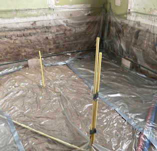Bij de voorbereiding van schuimbeton zijn kleine aanpassingen vaak onontbeerlijk. Doordat de kruipruimte straks een open bak is, heeft een elektricien een zilveren dienblad om zeer snel nieuwe elektra kabels van A naar B te leggen.