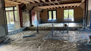 Folie wordt aangebracht op wand en bodem ter voorkoming van optrekkend vocht in het schuimbeton. Tevens dient deze als extra kering bij het aanbrengen van het schuimbeton en de (vloeibare) dekvloer.